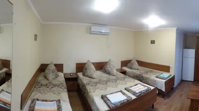 Приезжала отдыхать с детьми, огромное спасибо Анжелике, что заселила нас пораньше (приехали около 6утра). В комнате было всё необходимое для проживания: кровати, холодильник, сплит и отдельная ванная комната. Приготовить что-то можно в общей кухне, посуды на всех хватало, а обедали на веранде, на свежем воздухе. До пляжа можно было дойти пешком минут за 10-15 (паралийя) или доехать на маршрутке минут за 5. Также ездили на пляж тортуга, минут 15 езды. В пешей доступности пятёрочка, магнит. Спасибо ещё раз хозяйке за гостеприимство.