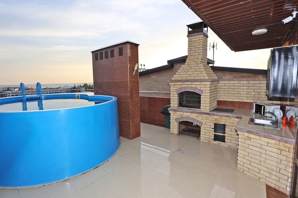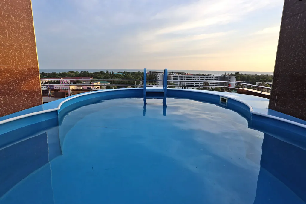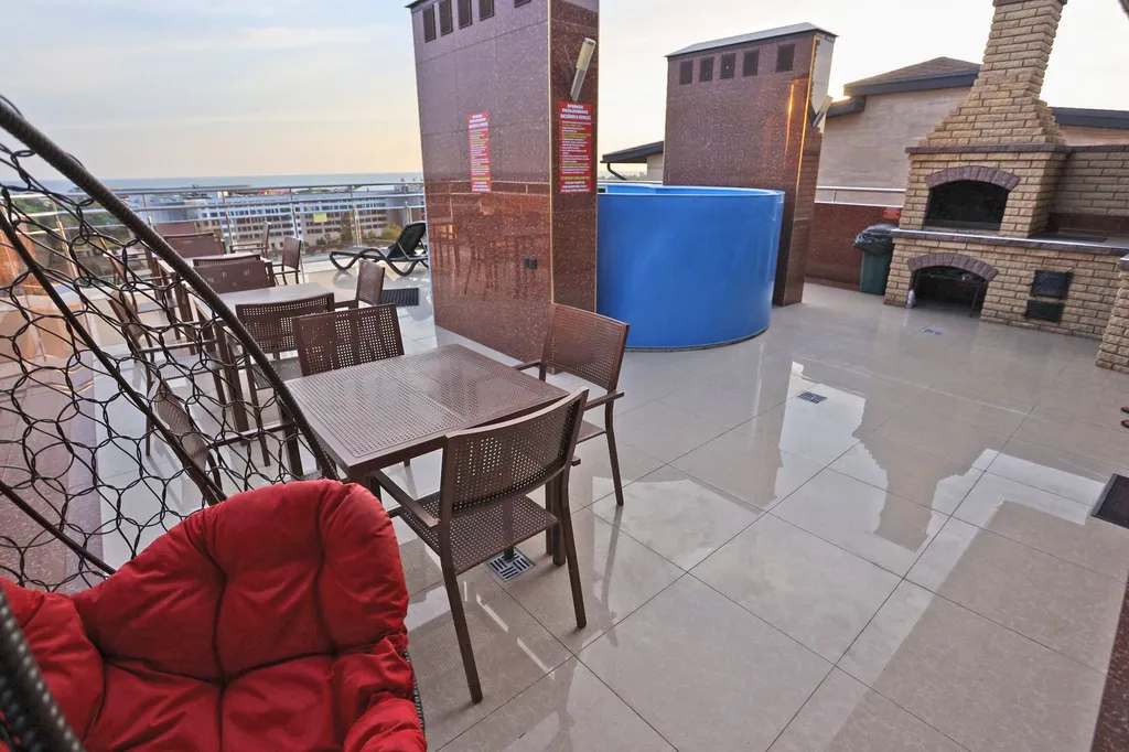 прекрасный отель в витязево, хороший ремонт, на крыше бассейн с подогревом и зона барбекю с прекрасным видом на поселок море и анапу. до моря 25 мин пешком. рядом есть все необходимые магазины. рекомендую