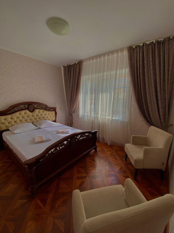 К услугам гостей — комфортабельные номера вместимостью до 6 человек. Имеются комнаты 2-х, 3-х, 4-х местные номера люкс, де люкс, стандарт. Люкс семейный 2-х комнатный, квартира 2-х и 1 ком. Со своей кухней. Все номера оборудованы; доступ к wi-fi, холодильником, телевизором (плазма), кондиционером, сан узел (полотенца, средства гигиены), феном для волос.