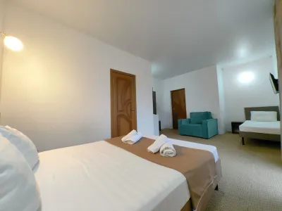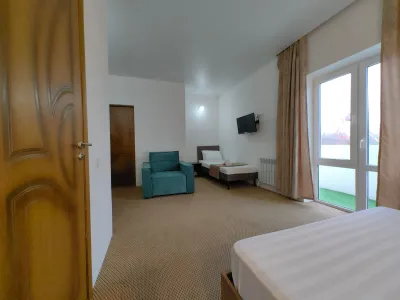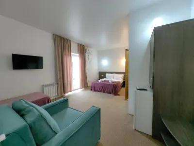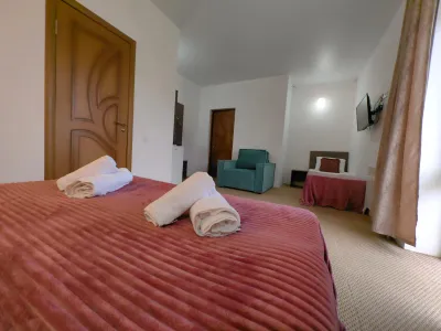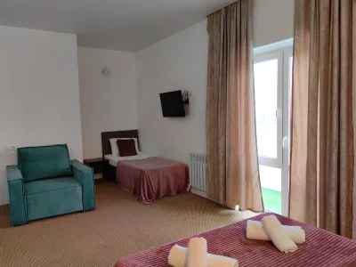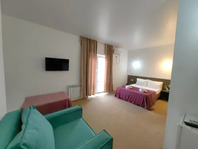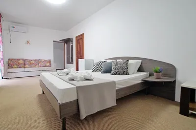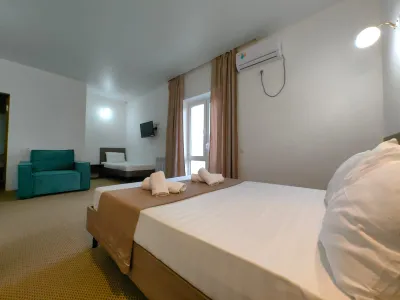 Сам… отель состоит из 35 комфортабельных номеров, 2-х, 3-х, 4-х и 5-ти местных. Все номера стандарт с современным дизайнерским ремонтом. В каждом номере душ, туалет, сплит система, холодильник, телевизор, вся необходимая мебель, большие окна. Номера с балконом. На каждом балконе столик со стульями, где можно позавтракать или выпить чашечку горячего кофе. В каждом номере - косметические принадлежности, полотенце.