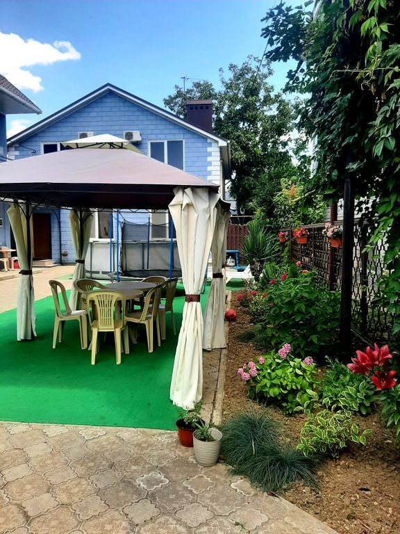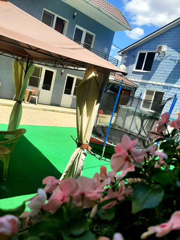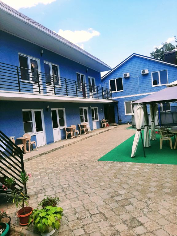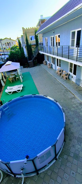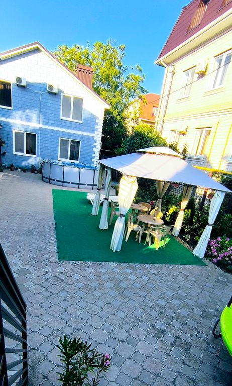 В каждом номере туалет и душевая кабина. На втором этаже в комнатах, где мы проживали есть кондиционер. На террасе есть беседка, бассейн круглый. Кухня общая на первом этаже. Хозяева хорошие люди